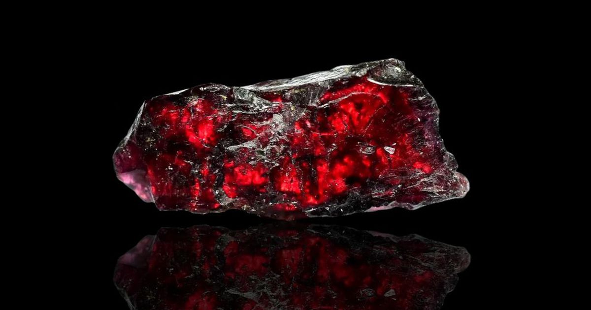 Its vivid red colour results from trace manganese. Gem-quality specimens are mined primarily in Utah, with limited occurrences in New Mexico in the United States. High-quality stones can reach up to $10,000 per carat.