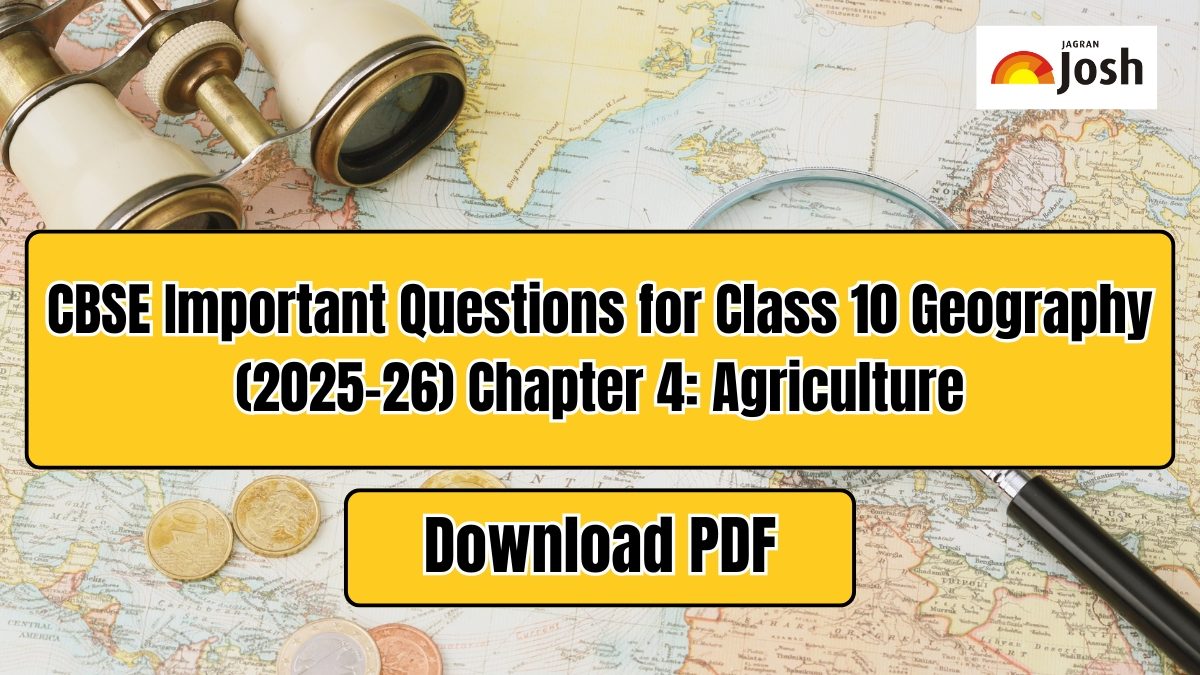 CBSE Important Questions for Class 10 Geography (2025-26) Chapter 4: Agriculture serves as a important tool for exam preparation. They help students grasp crucial concepts, enhance writing skills, and practice different question types. Downloading the PDF ensures thorough revision and effective readiness for the board exams.