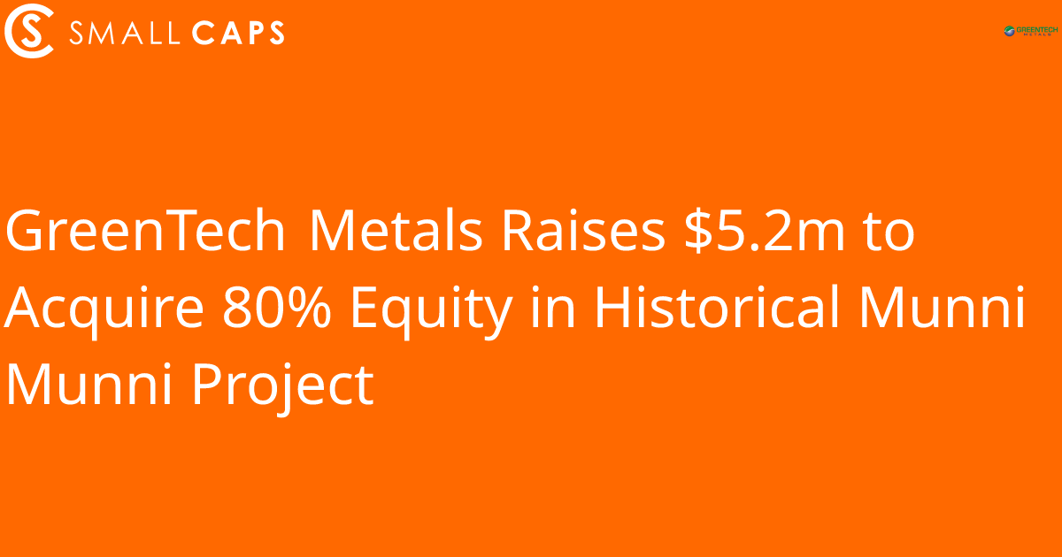 GreenTech Metals (ASX: GRE) has received firm commitments from new and existing investors to raise $5.2 million for the acquisition of up to 80% equity in the Munni Munni platinum-palladium-copper-nickel project in Western Australia.