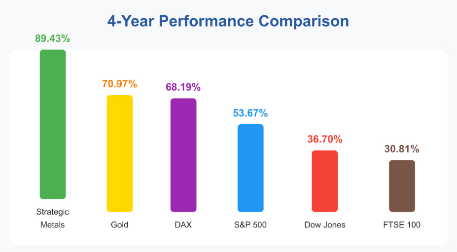 At the same time, one market that is benefiting from that volatile environment is metals. Precious metals, and specifically gold, have been enjoying a bull rally rarely seen before in history, with prices more than doubling from ~$1,800/oz to over $3,700/oz in just two years. Another, lesser known asset class that has appreciated to an even greater extent is strategic and rare industrial metals. Metals like gallium, germanium, indium, hafnium and rare earth elements have posted outsized gains on selected benchmarks, some up well over 100% since mid-2023 as supply tightened and buyers scrambled to secure material.