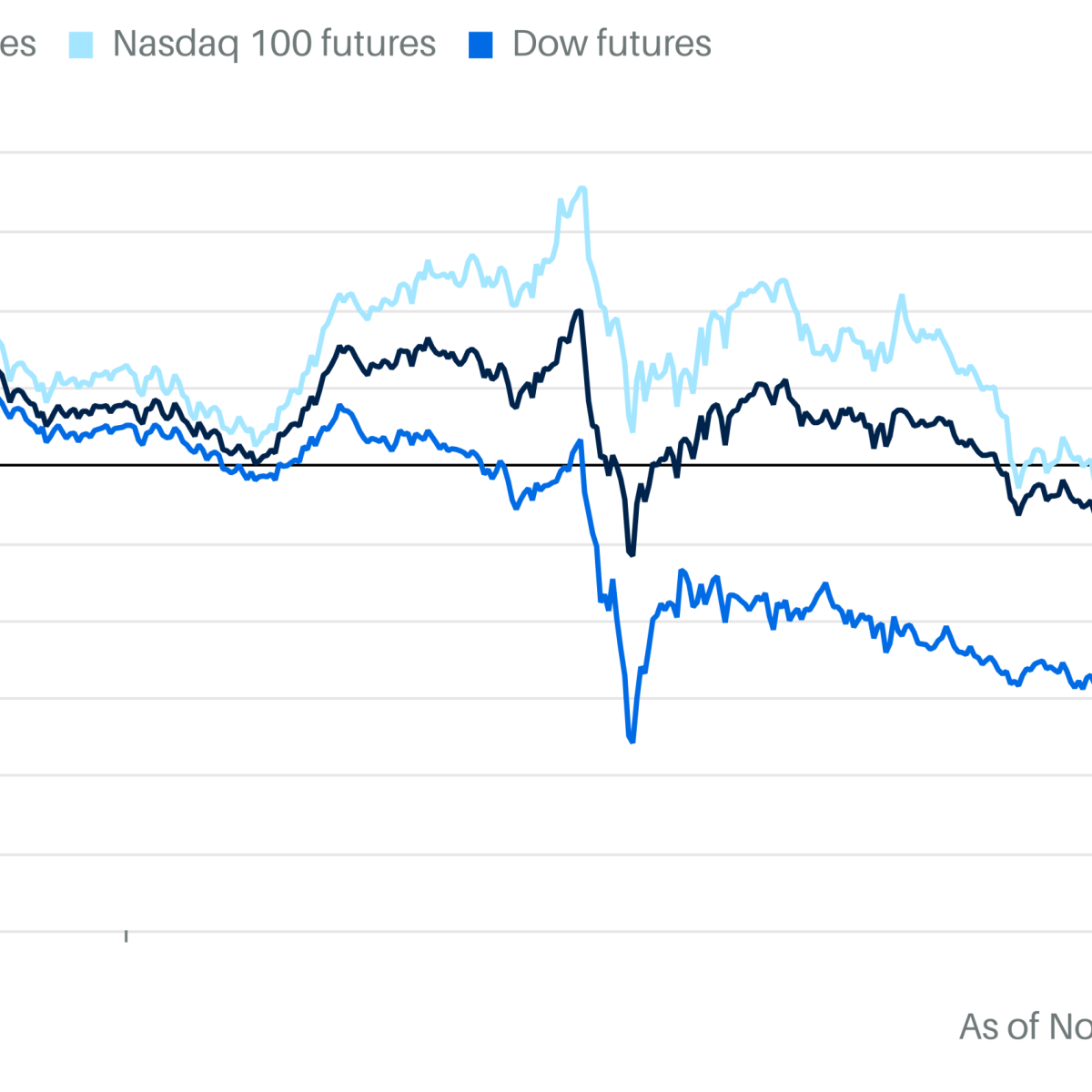 Futures tracking the Dow Jones Industrial Average dropped 337 points, or 0.7%. S&P 500 futures fell 1.0%, and contracts tied to the tech-heavy Nasdaq 100 tumbled 1.3%.