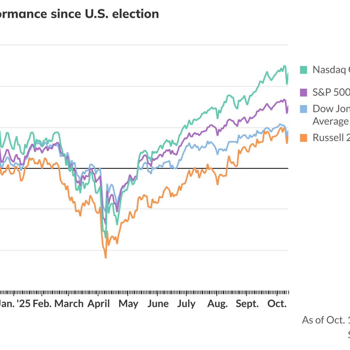 On Monday, the Dow Jones Industrial Average rose 588 points, or 1.29%, to 46,068, the S&P 500 increased 102 points, or 1.56%, to 6,655, and the Nasdaq Composite gained 490 points, or 2.21%, to 22,695.