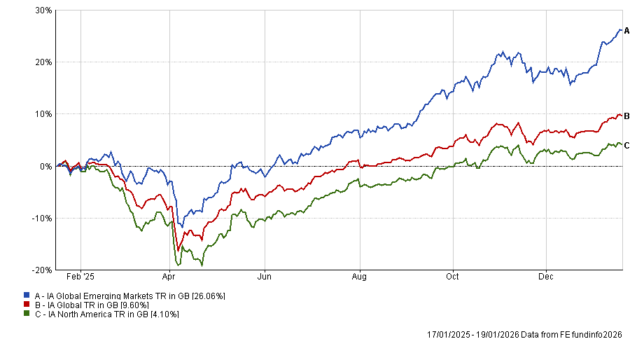 US tariffs might have been expected to be a negative for emerging market assets, but 2025 was the first year in around a decade that the IA Emerging Market index outperformed the IA Global sector.