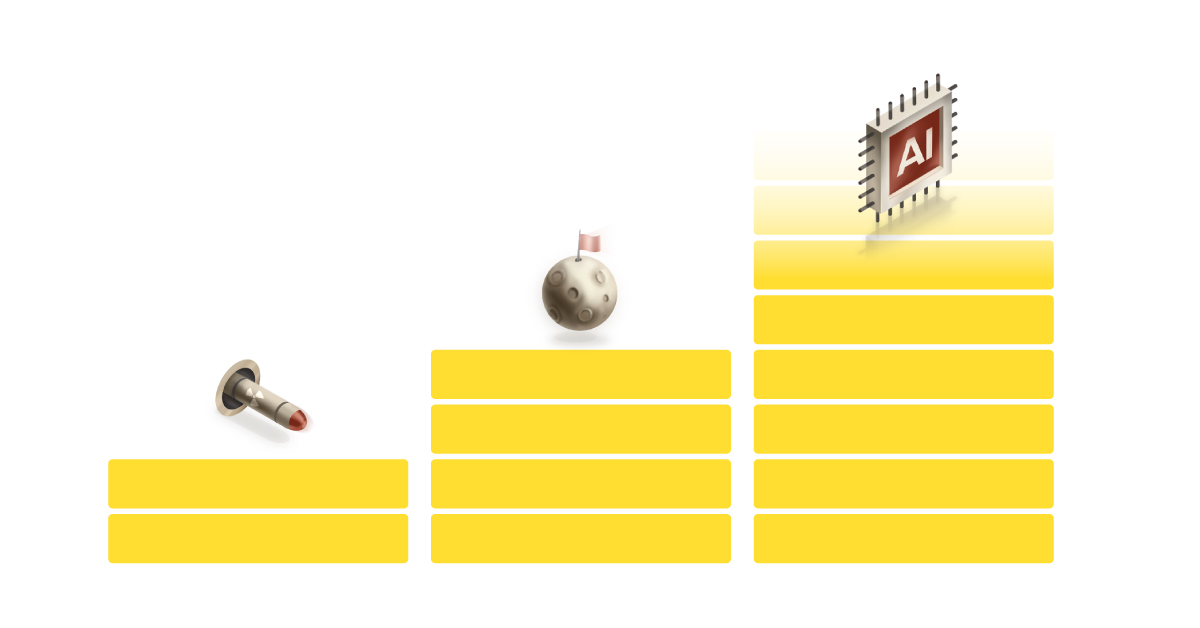 Investment in AI has not just outstripped government-led initiatives like the Manhattan Project and the Apollo program. It has also exceeded the capital put into other, more recent, market-driven technology booms.