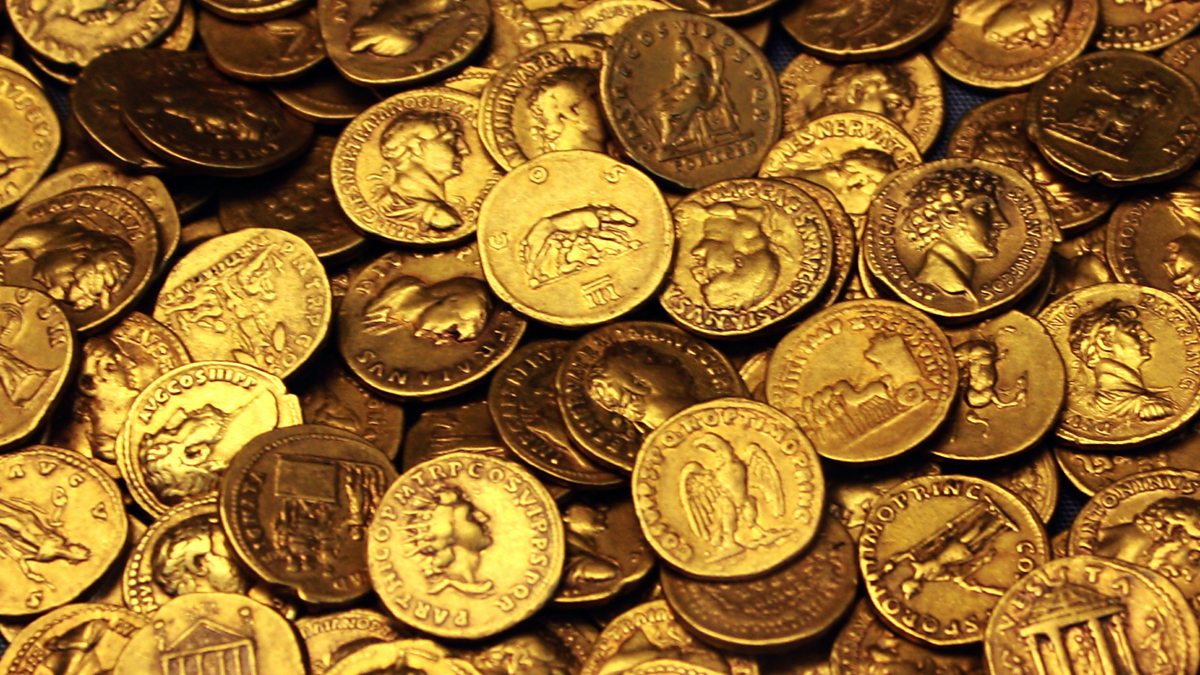 (Photo: Roman gold coins found in Corbridge, UK in 1911. Credit: Universal History Archive/Universal Images Group/Getty Images)