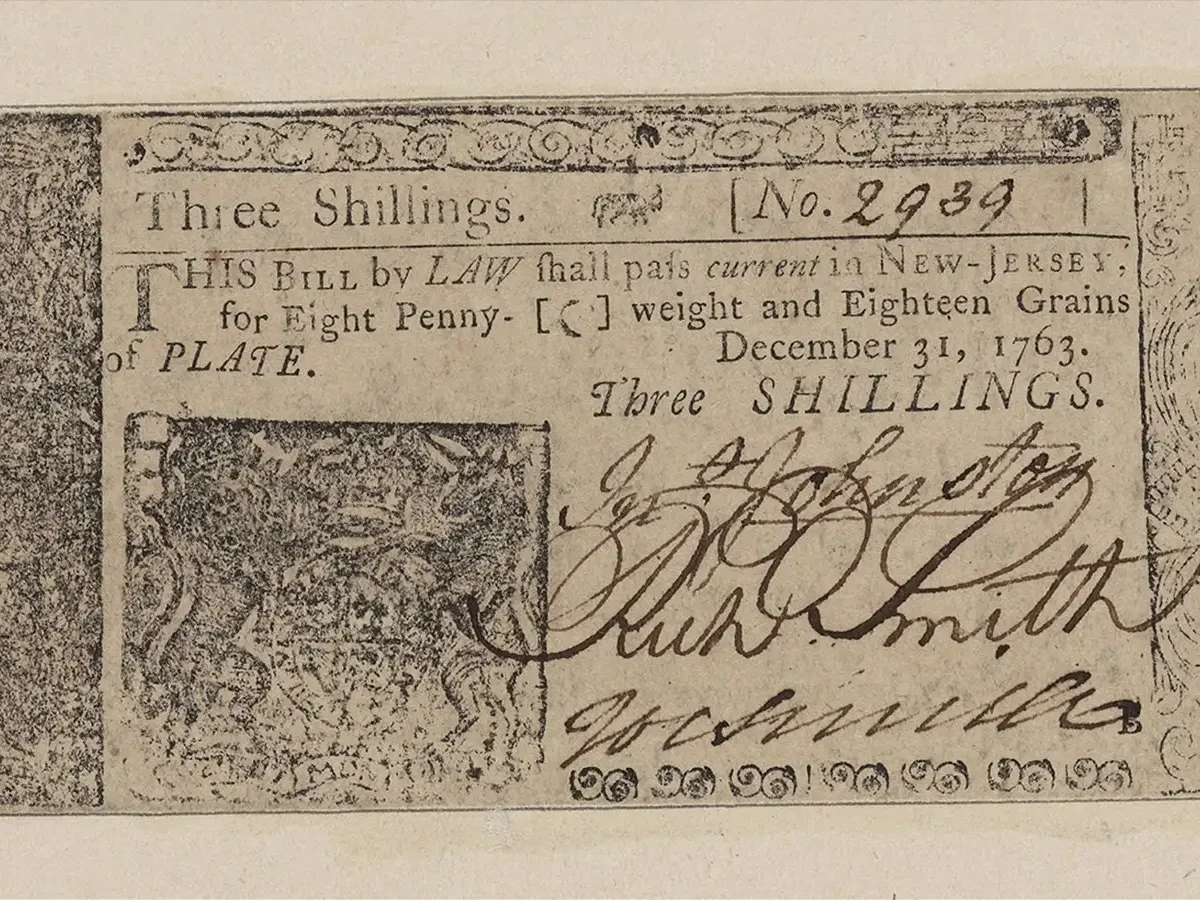 A colonial currency note issued by New Jersey in 1763