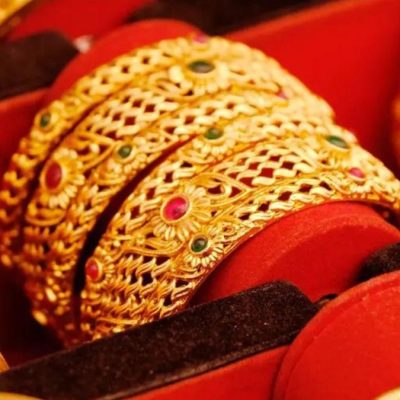 Bars of gold embossed with the Bitcoin logo.